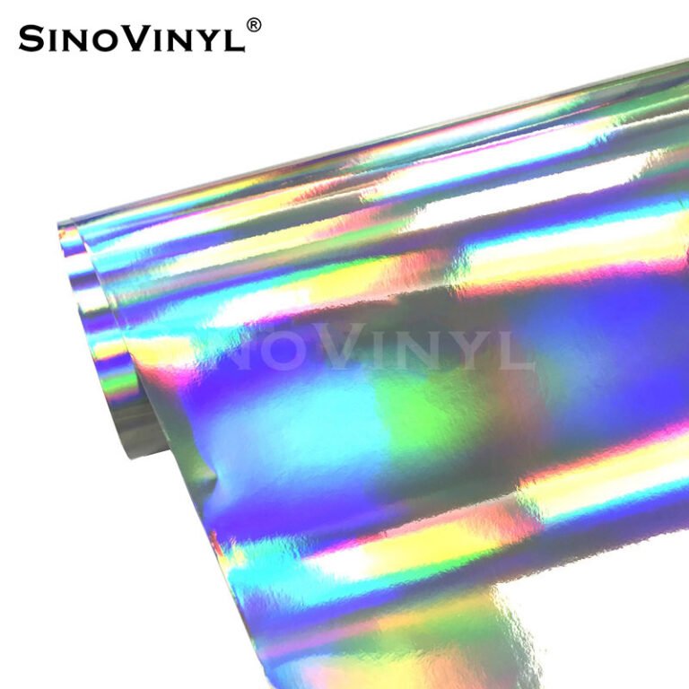 SINOVINYL Laser rainbow colorful self adhesive vinyl is professional for outdoor large format eco solvent graphic printing, use for vehicle advertising, outdoor&indoor sign.