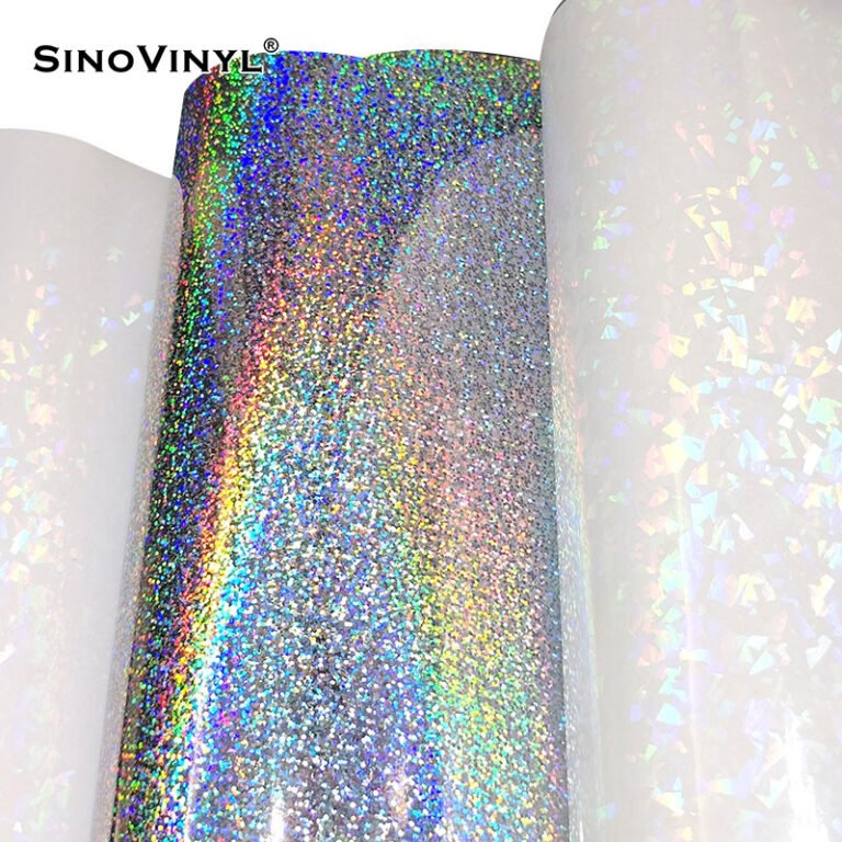 SINOVINYL® Holographic laser rainbow colorful self adhesive vinyl is professional for outdoor large format eco solvent graphic printing, use for vehicle advertising, outdoor&indoor sign.